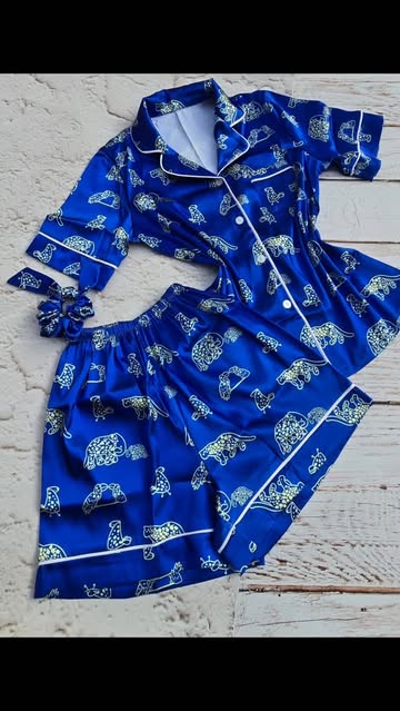 لباس خواب ساتن اصل شومیز شورتک طرح حیوانات سایز L,XL